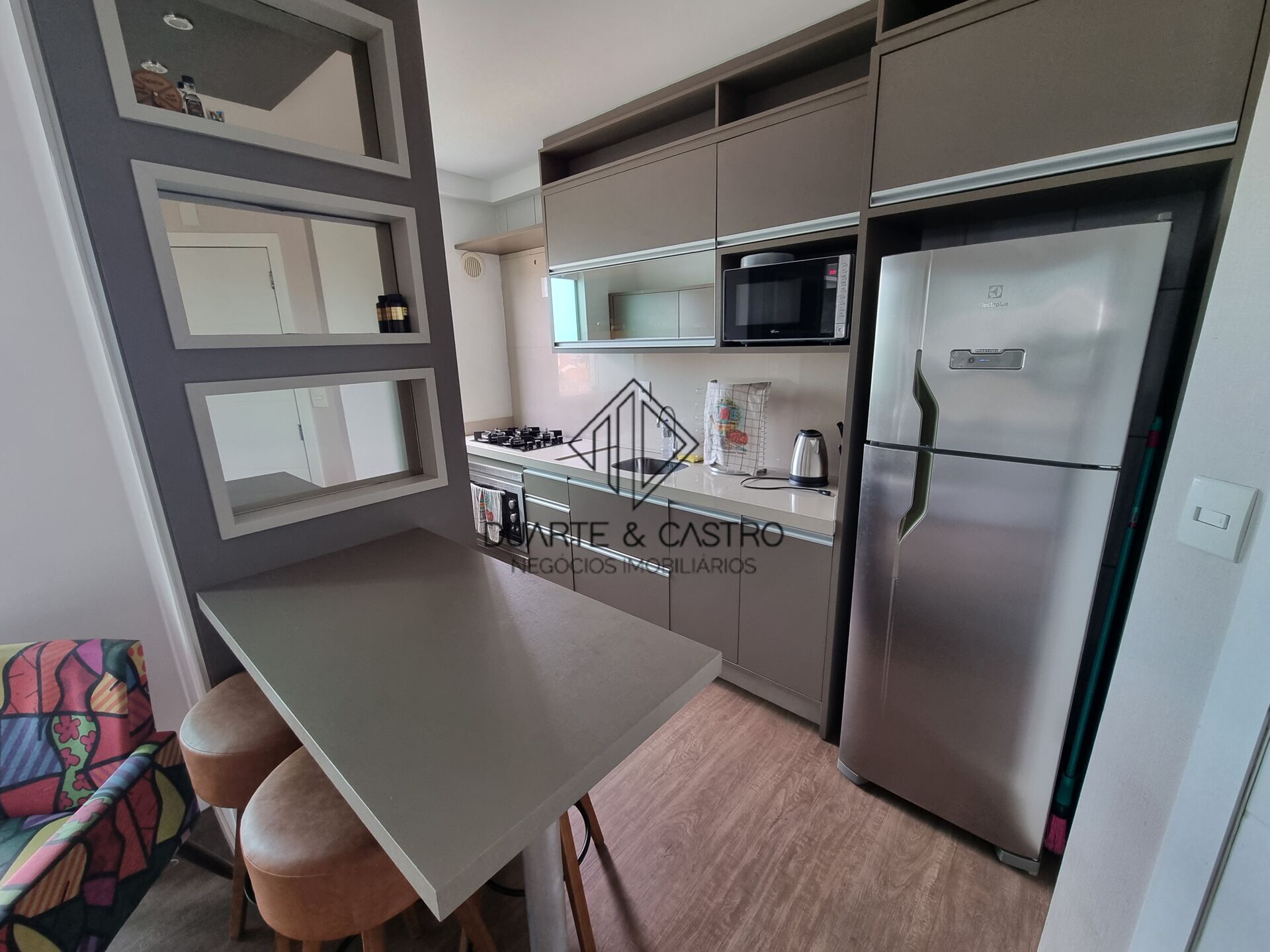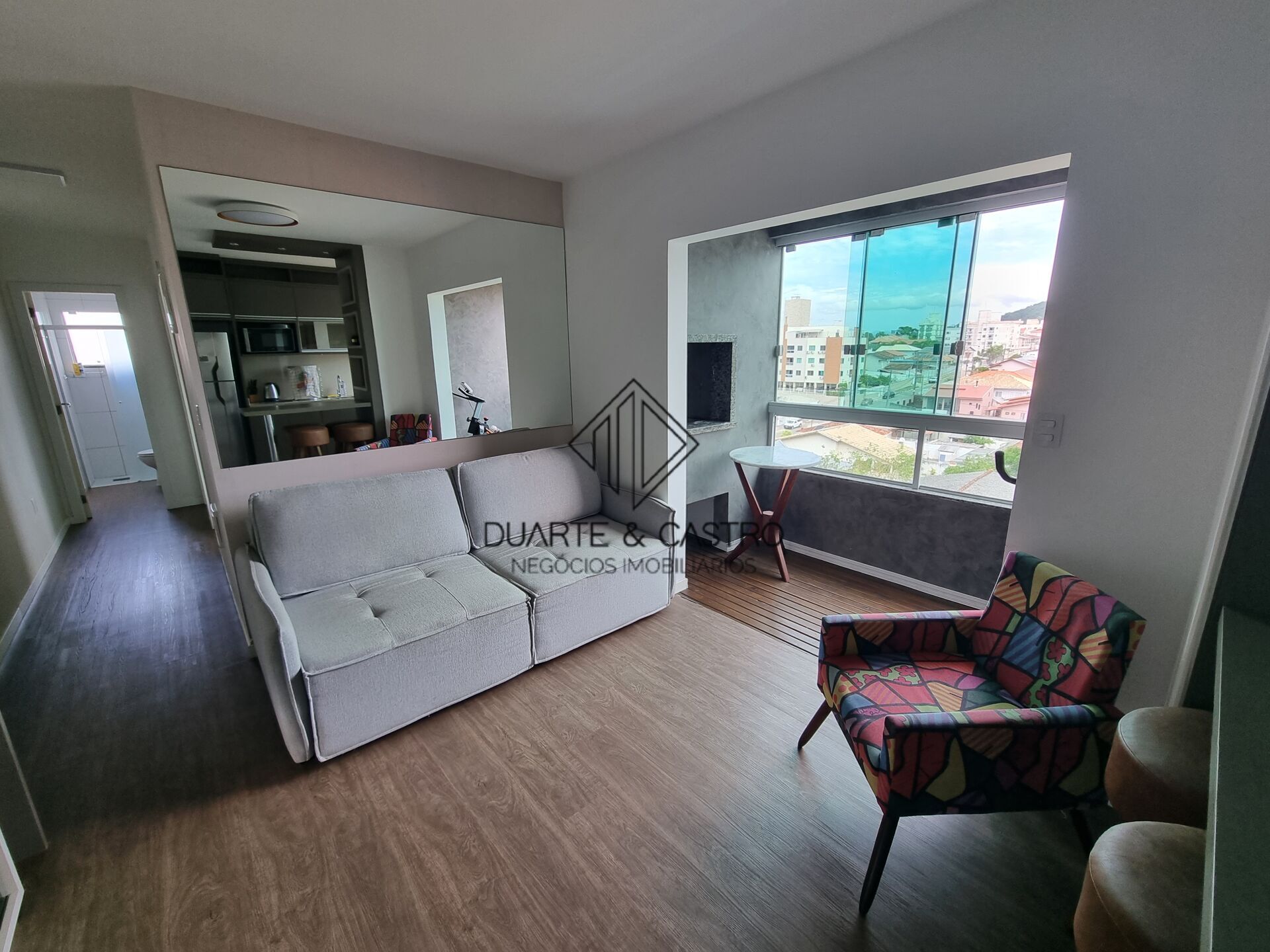 Localizado em um local privilegiado alto com vista livre, apartamento semi-mobiliado, 2 sacadas, piso vinílico, armários embutidos na cozinha e quartos, sacada com churrasqueira e vaga coberta privativa.