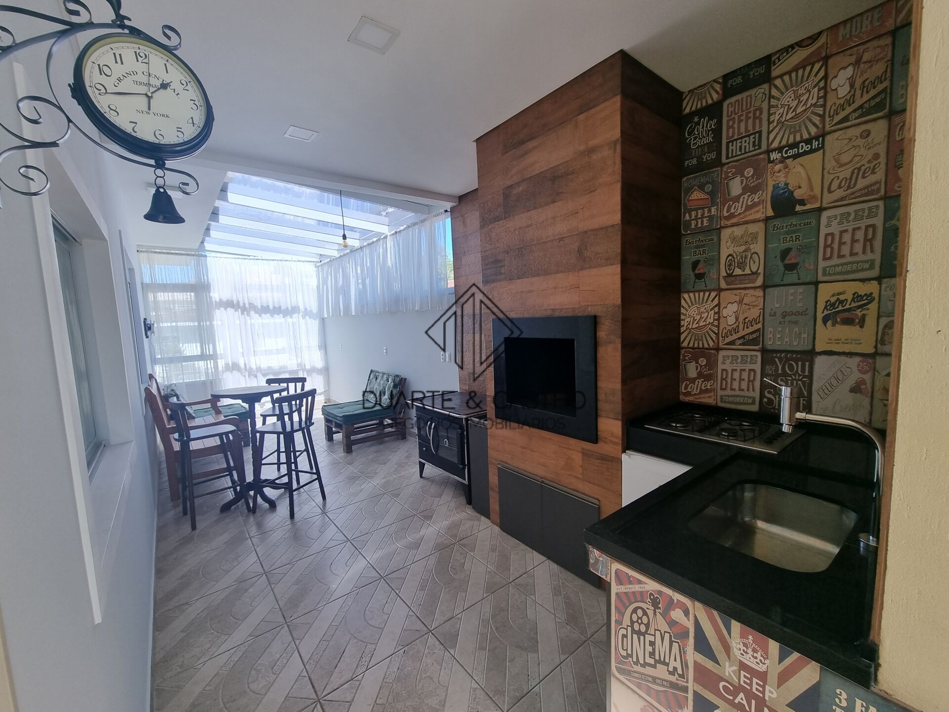 Área Gourmet bem ampla com churrasqueira a carvão e fogão a lenha, perfeito para receber osamigos